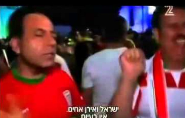التقى مراسل القناة الإسرائيلية الثانية ببعض مشجعي المنتخب الإيراني في البرازيل، الذين أدوا ترحيبهم به، إذ قبّل أحدهم المراسل، مؤكداً أن إسرائيل دولة جيدة وهو يحب إسرائيل.