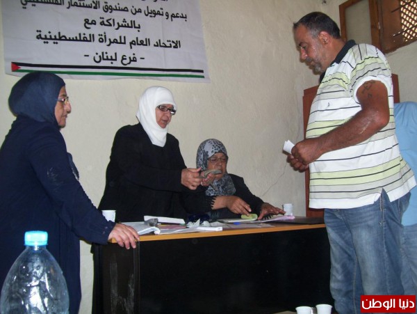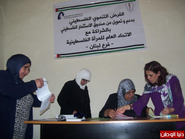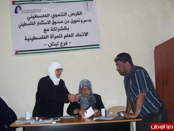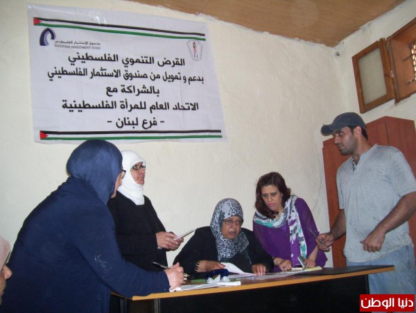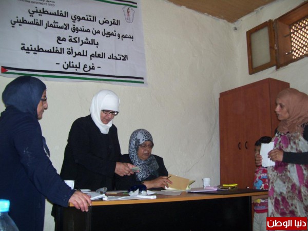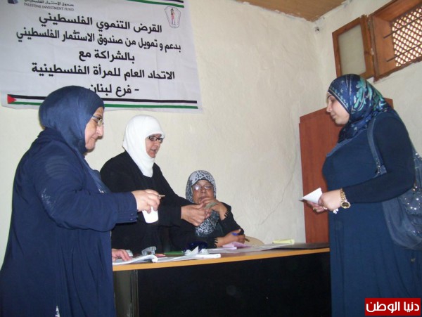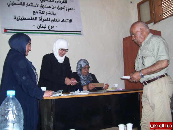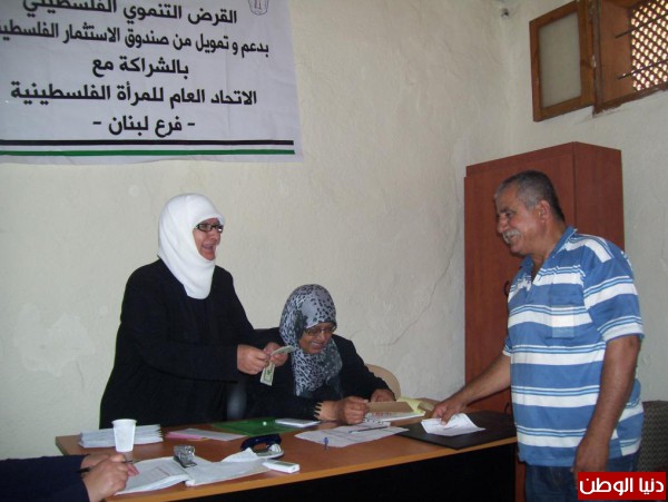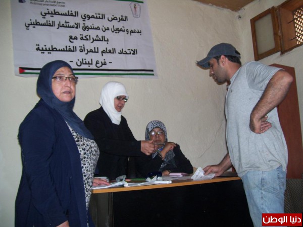 قامت لجنة القروض فيالاتحاد العام للمرأة الفلسطينية يوم الخميس في 26/6/2014 بتسليم مقدمي طلبات الاقتراض من اهاليمخيم عين الحلوة ومدينة صيدا المبالغ المقرة من قبل الجهات المعنية بكل من القرضالدواروالقرض المهني للشباب من جهه، والقرض التنموي الفلسطيني من جهة أخرى، علماَ أن الشق الأول ينفذه الاتحاد العام للمرأة الفلسطينية ـ فرع لبنانبدعم وتمويل من منظمة اليونيسيف والثاني بدعم وتمويل من صندوق الإستثمارالفلسطيني، وذلك بهدف تمكين المقترضين من تحسين قدرات مشاريعهم الانتاجية المحدودة أولاَ ولمساعدة الراغبين بتأسيس المشاريع الصغيرة ثانيا.