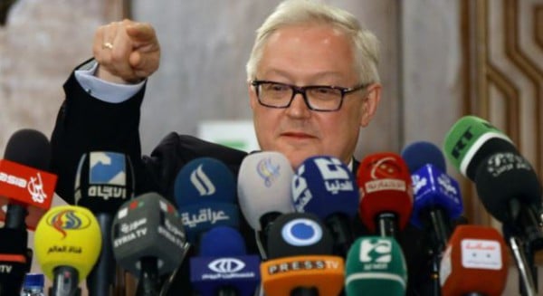 وقال ريابكوف "إن روسيا لن تبقى مكتوفة اليدين إزاء محاولات جماعات بث الإرهاب في دول المنطقة"، وذلك خلال مؤتمر صحافي عقده إثر لقائه السبت الرئيس السوري بشار الأسد.