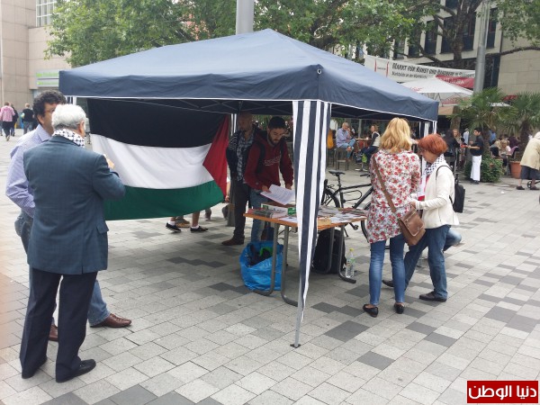 قام النشطاء بتوزيع البيان المشترك للجالية الفلسطينية في المانيا وجمعية الصداقة الالمانية الفلسطينية بالمانيا الذي ندد بالعدوان الصهيوني على فلسطين المحتلة الذي راح ضحيتة العديد من الابرياء من ابناء شعبنا من بينهم اطفال وشباب.