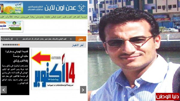 قال نائب رئيس مؤسسة اكتوبر ورئيس تحرير موقع عدن اون لاين الصحفي " عبدالرقيب الهدياني "في تعليق له عن خبر تم نشرة في موقع عدن اون لاين التابع له بان احد المحررين العالمين بالموقع قام بنشره خبر تشهير له كعملية ابتزاز بعد ثقة تم تسلميها له من قبل هيئة التحرير للموقع .