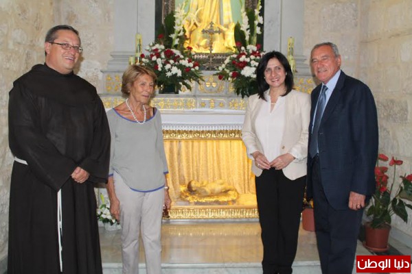 حيث قدّم الأب بوستوس الفرنسيسكاني شرحاً عن تاريخ الكنيسة وآخر تطوّرات أعمال الترميم فيها. ثم أطلعت بابون رئيس مجلس الشيوخ الايطالي غراسو على أوضاع مدينة بيت لحم من مختلف النواحي الاقتصادية والاجتماعية والسياسية.