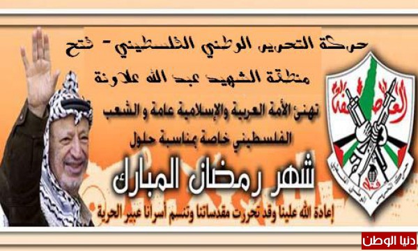حركة التحرير الوطني الفلسطيني فتح منطقة الشهيد عبد الله علاونة جبع بالتهنئة بمناسبة شهر رمضان الكريم
