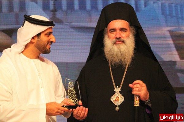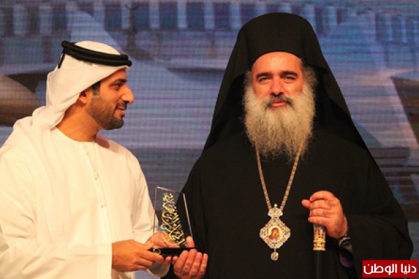 و في الختام قام سمو الشيخ سلطان بن احمد القاسمي بتكريم سيادة المطران و منحه درع امارة الشارقة.