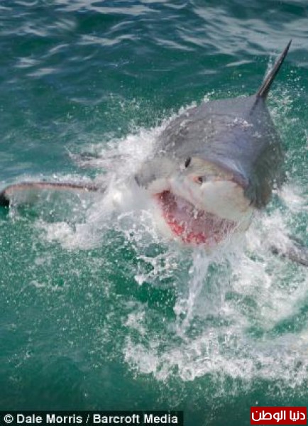 ويقول المصور البريطاني ديل موريس، 40 عاماً، والذي التقط الصور بمنتجع في خليج "موسل": "لقد مرت سمكة القرش مرات عدة من أمامنا، ثم رفعت رأسها وبعدها اختفت لفترة، وظننا أنها رحلت، لكنها فجأة ظهرت بصورة مرعبة فاتحة فكيها"، ويضيف "في الحقيقة كانت تنظر في عيوننا تماماً، ربما كانت تتحدانا".