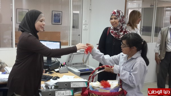 الجمعية للبنك لتهنئة الموظفين بحلول الشهر الفضيل وتقديم هدية الياسمين لكل موظف، في نشاط لدمج الاطفال داخل المجتمع واظهارا للبهجة من خلال التواصل الاجتماعي مع الآخرين.