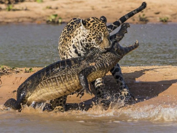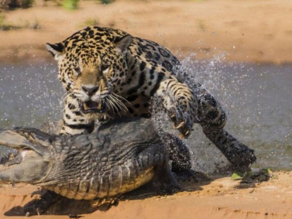 غالباً ما يقدم عالم الحيوان مشاهد رهيبة لصراع القوى بين الحيوانات. ولعل من أفظع تلك المشاهد عندما يتحول الصياد إلى فريسة. هذا ما حدث لتمساح وهو متسلق على أحد ضفاف البرازيل، حيث تسلل إليه فهد أميركي "جاجوار" بطريقة ماكرة ليداهمه وينقض عليه بسرعة فائقة لم تدع للتمساح مجالاً للهروب أو الدفاع عن نفسه.
