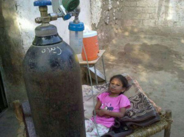 الأكسجين الصناعي إذا لم يتم تسفيرها للخارج وإجراء العمليات اللأزمة لها , والدها لم يعد قادراً على تلبية المصاريف الباهظة للاستمرار بمعالجة طفلته إبتسام التي تبلغ من العمر 7 سنوات