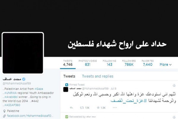 دعما لمدينته أعلن الفنان الفلسطيني محمد عساف الحداد على أرواح الشهداء الذين سقطوا جرّاء قصف العدو الإسرائيلي على غزّة فوضع صورة سوداء كصورة شخصية على جميع صفحاته في مواقع التواصل الاجتماعي .