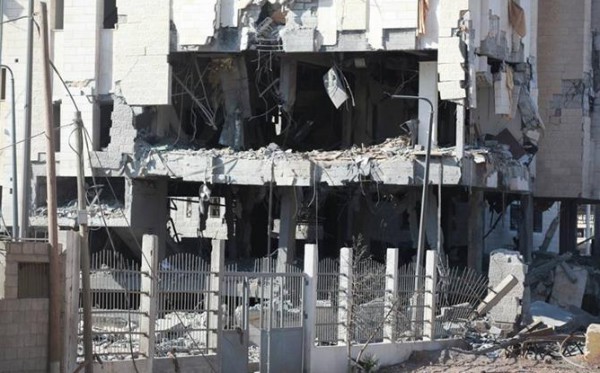واستهدف الطيران الحربي مبنى الإدارة العامة للشؤون العسكرية بقوات الأمن الوطني ومبنى "ساحل الشام" - مكتب وزير الداخلية - في مجمع أنصار غرب مدينة غزة.