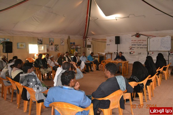 اقامت خيمة دعم المرحلة الانتقالية بمحافظة إب، الخميس الموافق 10/7/201م، حلقة نقاشية حول النظام الفيدرالي في ظل الدولة الاتحادية، والتي اقامتها مؤسسة مبادرون للتنمية المجتمعية.