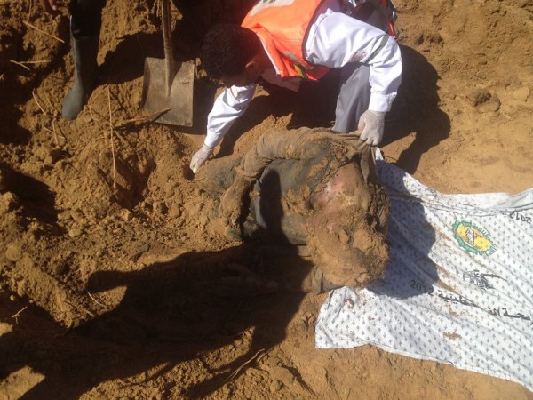 إنتشال جثة الشهيدعبد الحليم العشرة بعد فقدانه لمدة أربعة أيام في أرض زراعية في مدينة دير البلح