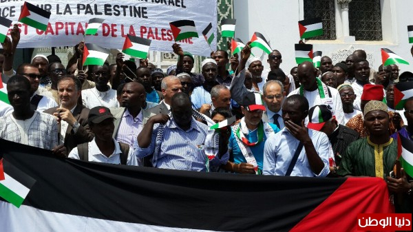 اتجاه الشعب الفلسطيني حيث كان التجمع الأول صباح اليوم امام مقر سفير دولة فلسطين لدى السنغال، والتجمع الثاني أمام الجامع الكبير في العاصمة السنغالية داكار. وذلك يوم الجمعة الموافق 11/07/ 2014.