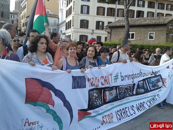 و قد شاركت السفيرة دمي كيلا و الجالية الفلسطينية في روما في مظاهرة جابت شوارع روما تدعوا لوقف العدوان الاسرائيلي الهمجي على قطاع غزة و دعت السفيرة كيلا لتحرك دولي فوري لوقف العدوان و ذكرت الحضور بمحرقة 2014 والذي