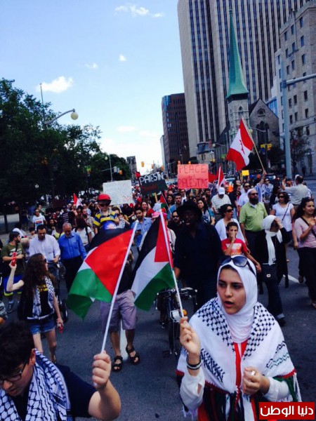 أقامت الجمعية الفلسطينية بالاشتراك مع عدد من المؤسسات و الجمعيات الكندية المناصرة للقضية الفلسطينية مسيرة حاشدة في العاصمة الكندية اوتاوا ضمت حوالي ال 5000 متظاهر للتنديد بالعدوان الاسرائيلي على غزة