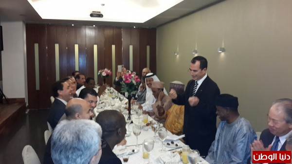 السفير د . منتصر أبو زيد يضع سفراء الدول العربية والأسلامية والآسيوية , وكبار مسؤولي وزارة الخارجية النيجيرية , بصورة تطورات العدوان الأسرائيلي المجرم على شعبنا الفلسطيني في قطاعنا الحبيب " غزة هاشم " , حيث أقام مساء هذا اليوم حفل افطار رمضاني للجميع , للوقوف الى جانب شعبنا في قطاع غزة , حيث حضر عن وزارة الخارجية كل من السفير " صالح مانو " مسؤول العلاقات الثنائية مع كافة الأقاليم والمناطق في العالم , والسفير عثمان برايا - مدير ادارة المراسم في وزارة الخارجية , والسيد " أحمد مانزو - المدير العام لأدارة الشرق الأوسط والخليج في وزارة الخارجية , وممثلا عن ولاية نصراوا النيجيرية , حيث رحب السفير أبو زيد بكافة الضيوف وألقى كلمة تفصيلية عن مجريات العدوان الأسرائيلية والأحصائيات الدقيقة لعدد الشهداء والجرحى والتدمير , وكل الجرائم التي ترتكبها اسرائيل يوميا ضد شعبنا الفلسطيني , كما رد على ادعائات السفارة الأسرائيلية الكاذبه عبر الأعلام النيجيري هذا اليوم والذي ربط حركتي حماس والجهاد الأسلامي بمنظمة بوكو حرام النيجيرية والقاعدة , طالبا من الحكومة النيجيرية ادانة ( الأرهاب الفلسطيني ) على حد تعبيرهم , ولكن نيجيريا رفضت هذا الطلب , والتزمت بقرار منظمة التعاون الأسلامي في جدة بادانة العدوان الأسرائيلي على الشعب الفلسطيني واستخدام القوة المفرطة ضد العزل وقتل الأطفال والنساء والشيوخ , كما طالب السفير أبو زيد المجتمع الدولي بتوفير الحماية الدولية للشعب الفلسطيني من البطش والأبادة الجماعية التي يتعرض لها شعبنا في قطاع غزة من جراء الغارات الأسرائيلية المتواصلة على البيوت الفلسطينية , وبعد ذلك تحدث عن وزارة الخارجية السفير صالح مانو , وأكد موقف نيجيريا المتعاطف جدا مع الشعب الفلسطيني والداعم للقضية الفلسطينية وتبنيه خيار حل الدولتين , وعبر باسم الخارجية النيجيرية بمساندة بلاده لكافة الحقوق الفلسطينية ورفضها لهذا العدوان الهمجي . كما أعرب جميع السفراء الدول العربية والأسلامية والآسيوية تضامنها الكامل مع الشعب الفلسطيني ورفضها لهذا العدوان الغاشم والمستمر ضد الشعب الفلسطيني .