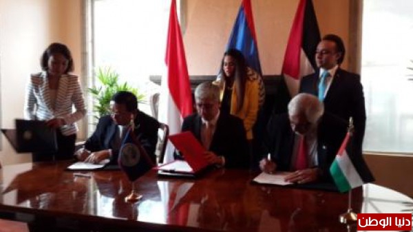 تم بعد ظهر اليوم توقيع إتفاقية إقامة علاقات دبلوماسية على مستوى السفارة بين دولة فلسطين وبليز .