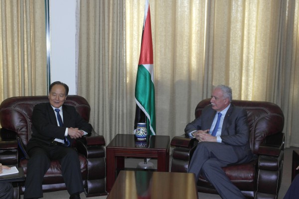 وثمن المالكي موقف الصين حكومة وشعباً تجاه القضية الفلسطينية، واهتمامها وقلقها بمتابعتها للاوضاع في فلسطين، كذلك قرار الحكومة الحكومة الصينية بتقديم مساعدات انساية عاجلة الى قطاع غزة.