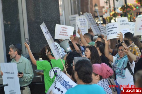 في تطور لافت على صعيد الاحتجاجات العالمية على الجرائم الإسرائيلية المرتكبة في الأراضي الفلسطينية، إقتحمت مجموعة مؤيدة لفلسطين في شيكاغو أمس الأربعاء السادس عشر من يوليو الجاري ، المقر الرئيسي لشركة "بوينج" المنتجة لطائرات "الأباتشي" و"ال اف16" وذلك ضمن تطوير الفعاليات الاحتجاجية بإتجاه حملات عصيان مدني تستهدف مقار الشركات المتعاملة مع الاحتلال الإسرائيلي ومكاتب المسؤولين الحكوميين وأعضاء الكونغرس الذين يدعمون الجرائم الإسرائيلية.