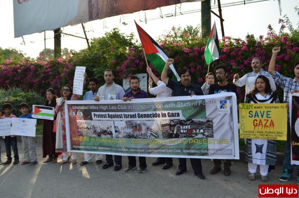 تنديداً بالمجازر البشعة ضد الشعب الفلسطيني الأعزل وما يتعرض له من عدوان هجمي طال الحجر والشجر والبشر ، شهدت العاصمة الباكستانية اسلام اباد اليوم مسيرة احتجاجية ضد العدوان الإسرائيلي الجاري على قطاع غزة أمام نادي الصحافة الباكستاني ، وقاد المسيرة مؤسسة Islamabad leo club و وفد من الإتحاد العام لطلبة فلسطين – فرع باكستان و عدد من الأحزاب السياسيية ، حيث ندد المشاركون بالمجازر الإسرائيلية الجارية بحق الشعب الفلسطيني الأعزل وخصوصا ما يتعرض له سكان قطاع غزة.