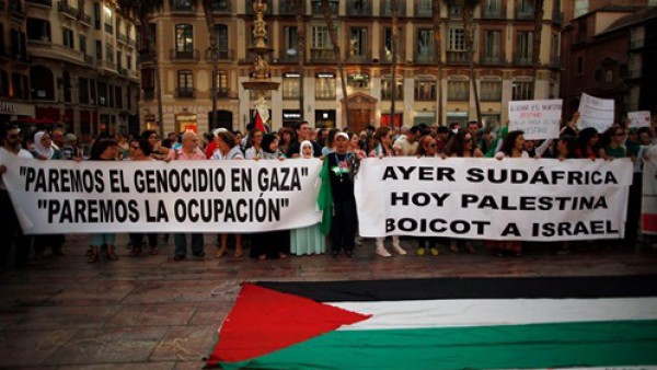 ورفع المتظاهرون شعارات تندد بالمجازر الإسرائيلية في قطاع غزة، مطالبين بمحاكمة مقترفي جرائم الحرب الإسرائيلية، وبقطع العلاقات الدبلوماسية مع إسرائيل لتماديها في انتهاك حقوق الإنسان.