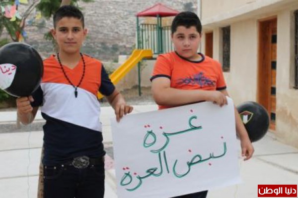 أطفال قرية نصف جبيل في محافظة نابلس يتضامنون مع أطفال غزة