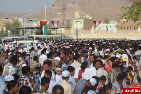 العيد في تريم: شعارات الجنوب وغزة جنبا الى جنب بحضور الالاف