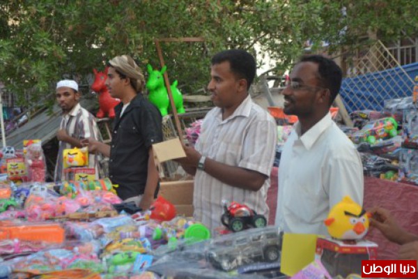 كما بدأت أجواء الفرحة لدى الأطفال من خلال شرائهم البالونات والألعاب، ومرتدين الملابس الجديدة، ابتهاجاً بعيد الفطر المبارك.