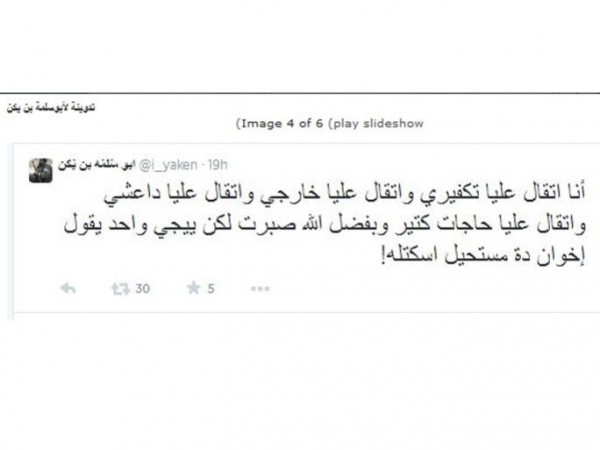 الصورة تم مسحها من الحساب الذي أصبح حسابا خاصا لا يمكن لأي أحد الدخول إليه، بسبب الردود الغاضبة من المغردين على ما ينشره "الداعشي".