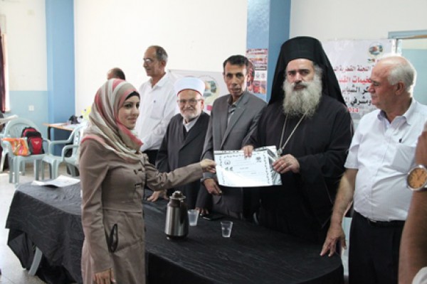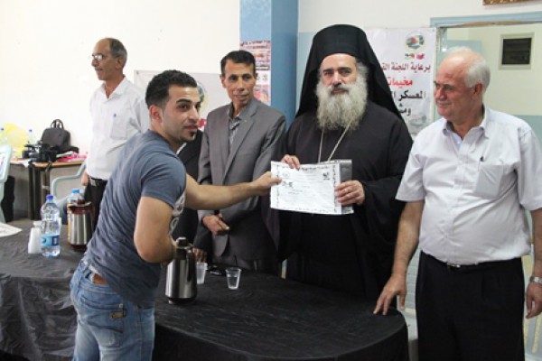 هذه لقطات من اختتام المعسكر التدريبي الشبابي الخاص بقادة المخيمات الصيفية في القدس و ذلك بحضور سيادة المطران عطاالله حنا رئيس اساقفة سبسطية للروم الارثوذكس ، و فضيلة الشيخ عكرمة صبري رئيس الهيئة الاسلامية العليا ، و السيد جميل دويك مدير مؤسسة الرازي المشرفة على هذا النشاط ، و السيد حاتم عبد القادر و قد تم توزيع الشهادات على المشاركين في هذه الدورة التدريبية التي استمرت ثلاثة ايام حافلة بالحلقات الدراسية و النشاطات الثقافية .