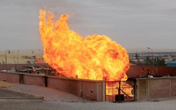 فجر مسلحون مجهولون، فجر اليوم الخميس، خط الغاز الطبيعي بمنطقة القريعة جنوب الشيخ زويد جنوب شرق العريش بمحافظة شمال سيناء.