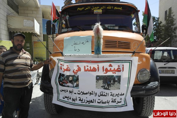 المركبات العمومية والحافلات تجوب شوارع العيزرية وابوديس تضامنا مع غزة