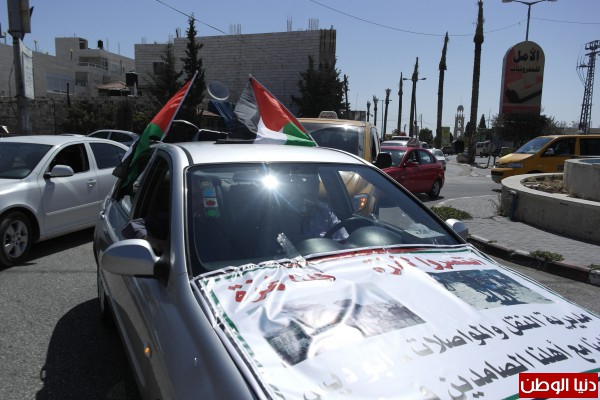 بمشاركة عدد كبير من السيارات والحافلات للتضامن مع غزة التي استقلها مواطنون وممثلون عن المؤسسات الاهلية والرسمية .