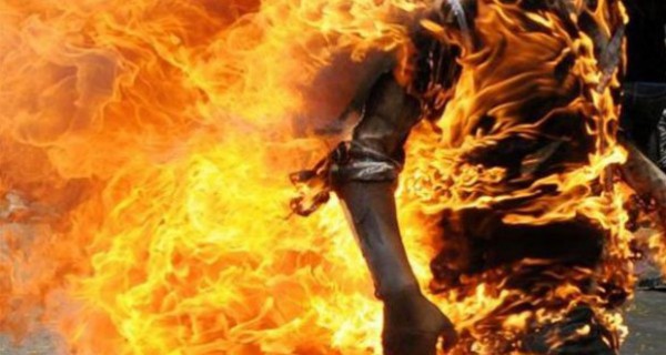 وعند خروج الزوجة إلى الباب الخارجي، غمر جسمه بكميات كبيرة من البنزين وأشعل النار أمام مرأى زوجته فاشتعلت فيه وشوهد هو ويسقط أرضاً ويتدحرج في الأرض وسط ذهول المارة ليتم إسعافه سريعاً إلى مستشفى قريب لكن الموت كان أسرع.