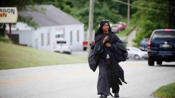 عجوز غريبة ترتدي الأسود وتجوب الولايات المتحدة مشيا على الأقدام تحير الأمريكيين