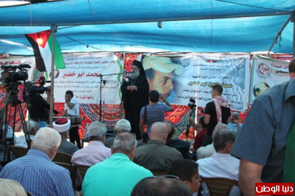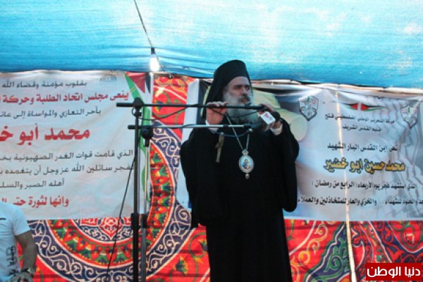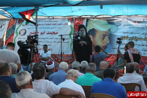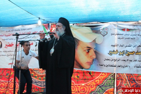 هذه بعض الصور من المهرجان الرسمي و الشعبي تأبينا لشهيد القدس محمد ابو خضير و الذي تحدث فيه فضيلة الشيخ محمد حسين مفتي القدس و الديار الفلسطينية ، ةو سيادة المطران عطاالله حنا رئيس اساقفة سبسطية للروم الارثوذكس ، و عطوفة وزير و محافظ القدس الشريف الاستاذ عدنان الحسيني الى جانب عدد من الشخصيات الفلسطينية الاخرى.