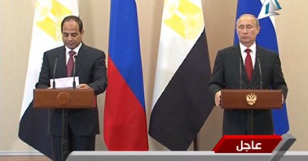 وأوضح بوتين خلال المؤتمر الصحفى مع الرئيس عبد الفتاح السيسى، بمنتجع سوتشى، اليوم الثلاثاء، أن مصر وقعت مع روسيا بروتوكول لإمداد القاهرة بالأسلحة، فى شهر مارس الماضى، وأن هناك مزيدا من التعاون فى قطاع الفضاء، حيث إنه فى شهر أبريل الماضى انطلق من قاعدة "بايكونور" بكازخستان، حاملة الصواريخ الروسية إلى الفضاء لإطلاق القمر الصناعى المصرى للاستشعار عن بعد، وأشار بوتين إلى أن هناك احتمالات جيدة فى صناعة السيارات.