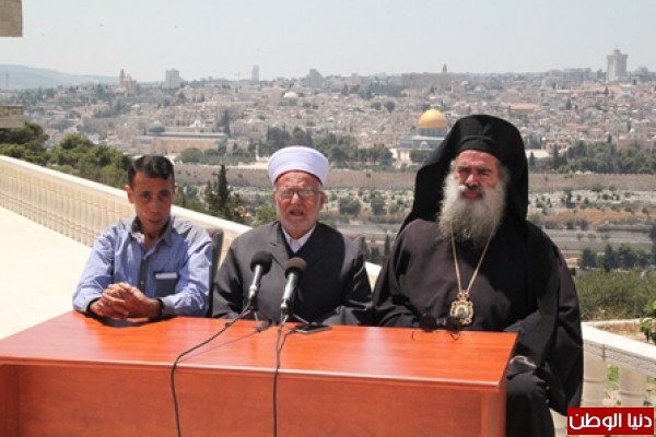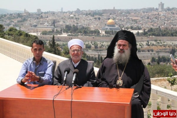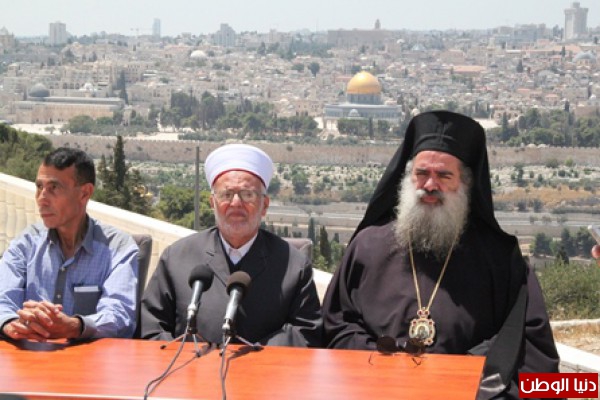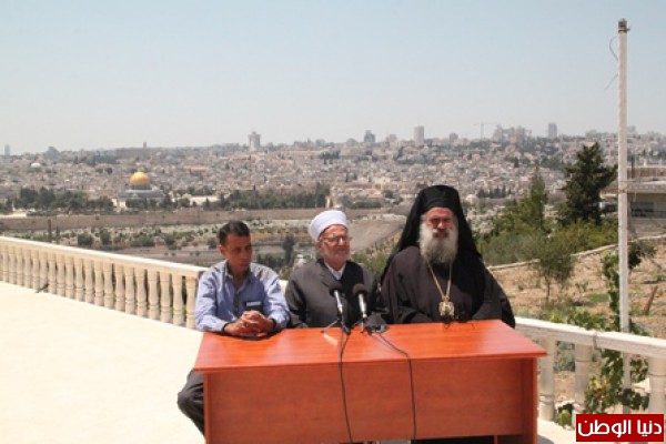 المطران عطاالله حنا و الشيخ عكرمة صبري و السيد حاتم عبد القادر في مؤتمر صحفي حول اوضاع مدينة القدس