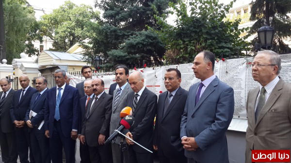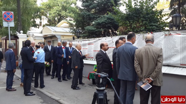 السفراء العرب يزورون سفارة فلسطين في موسكو ويضعون الزهور على جدارية الشهداء