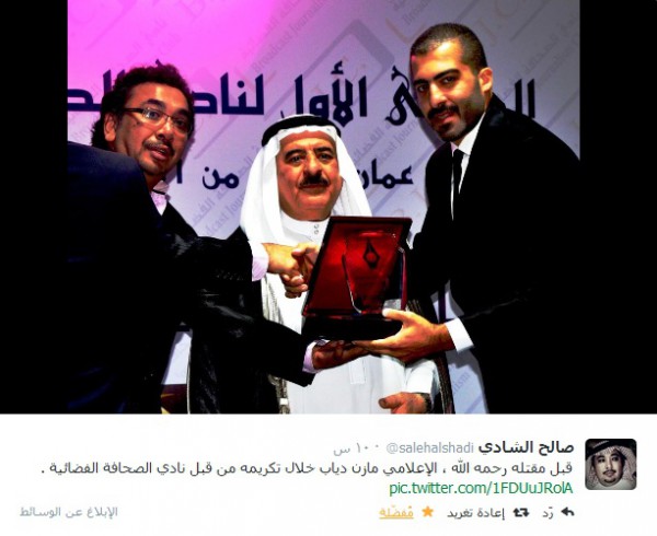 غرّد الشاعر والكاتب والأكاديمي السعودي رئيس نادي الصحافة الفضائية العربية صالح الشادي عبر صفحته الشخصية في تويتر متأثراً بمصابنا الجلل في الجريمة التي هزت الوسط الاعلامي والشارع العربي والأردني وهي مقتل الزميل الاعلامي