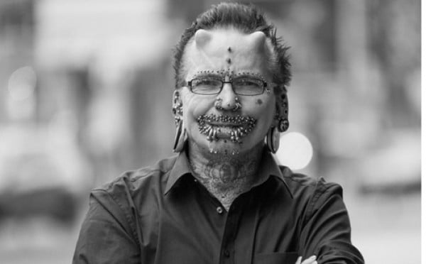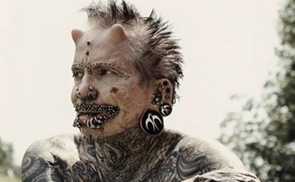 له قرنان في جبهته يشبه الشكل الذي رسمه الإنسان في مخيلته للشيطان منذ قديم الزمان، وله لسان مشقوق كالأفعى، يحمل في جسده 453 ثقبا محققا رقما قياسيا في موسوعة جينيس للأرقام القياسية كصاحب أكبر عدد من الثقوب بجسده في العالم، يغطي الوشم الغريب جميع جسده، يعمل مبرمج كمبيوتر، وقام بعدد من عمليات التجميل للحصول على هذا المظهر.