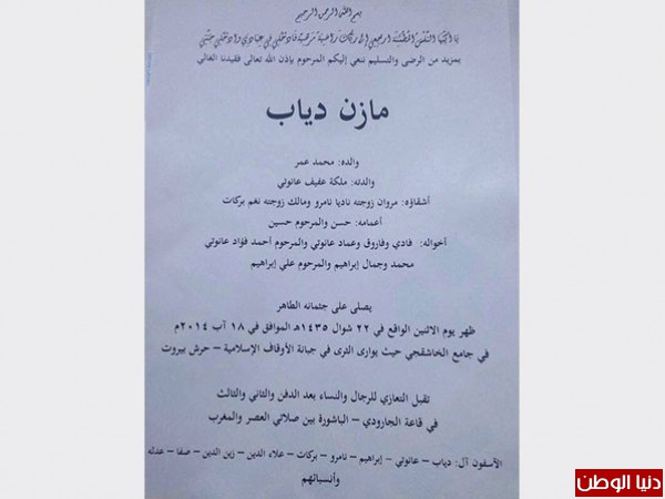 ومن المقرر أن تشيع جنازته بعد صلاة ظهر اليوم، من مسجد «الخاشقجى» في لبنان، وسيتم تقبل التعازي لمدة ثلاثة أيام في قاعة «الجارودي- الباشورة»، بين صلاتي العصر والمغرب.