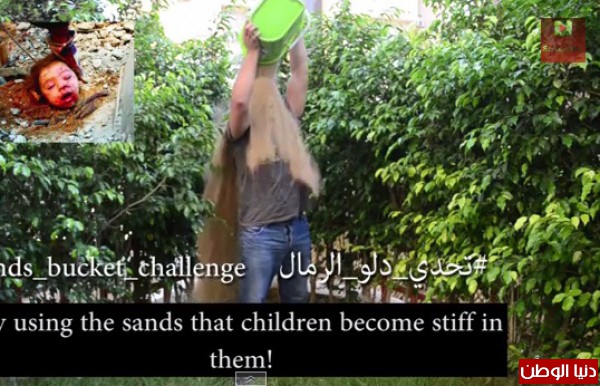 وأطلق عزب تحدي دلو الرمال للتضامن مع غزة تزامنا مع الدعوة التي أطلقها الإعلامي الفلسطيني أيمن العالول واستجاب لها الفنان محمد عساف.