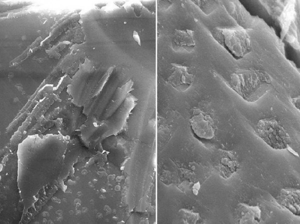 وحين حللوا بعضها وجدوا تأثيراً واضحاً للمياه واستخدم الفريق الثلاثي كاشفات بالأشعة السينية ومجاهر إلكتروسكوبية، كما وجهاز spectroscopy المطيافي لتحليل تركيبة الشكل البيضاوي الأجوف، وهو بحجم 4.8 ملليمترات، أي أكبر بكثير من أي بكتيريا أرضية عملاقة، لذلك فلو اتضح بأنه خلية فعلا، فإن مصدرها ليس من تعرض النيزك لملوثات أرضية لصقت منها إحدى البكتيريات فيه، بل من حياة في ماضي المريخ البعيد.
