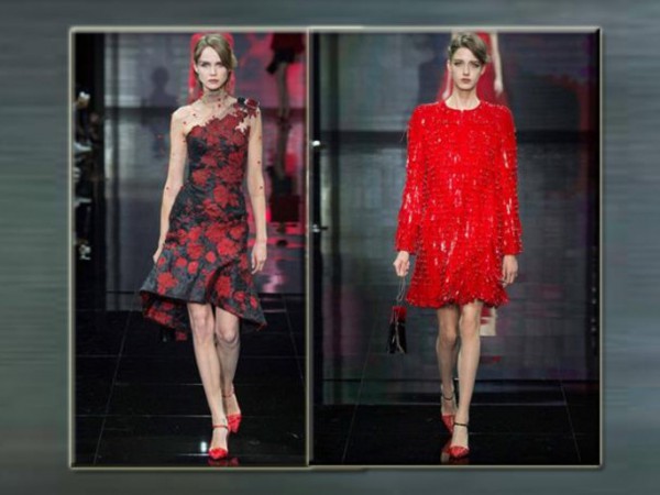 - ركزت دار Armani في مجموعة Armani Prive على اللونين الأحمر والأسود لتصميم أثواب تليق بأرقى المناسبات.