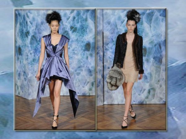 - اختارت دار Alexis Mabilleالألوان الحيادية كالرمادي والبيج لتنفيذ أثواب كوكتيل من الحرير والدانتيل.