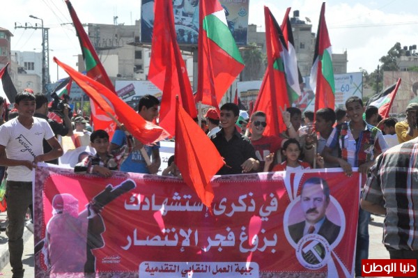 نظمت الجبهة الشعبية لتحرير فلسطين مسيراً جماهيرياً حاشداً ضم الآلاف من كوادر وأنصار الجبهة ومئات المقاتلين من كتائب الشهيد أبو علي مصطفى تخليداً للذكرى الثالثة عشر لاستشهاد القائد الوطني الأممي والأمين العام السابق للجبهة الشعبية أبو علي مصطفى، واحتفاءً بالانتصار الذي حققته غزة في العدوان الأخير.