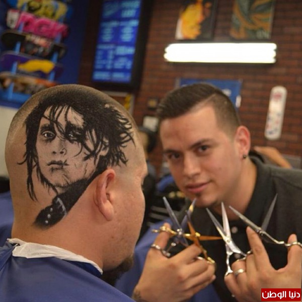 بالصور.. حلّاق يرسم لوحات فنية على رؤوس الزبائن بالمقص والمشط