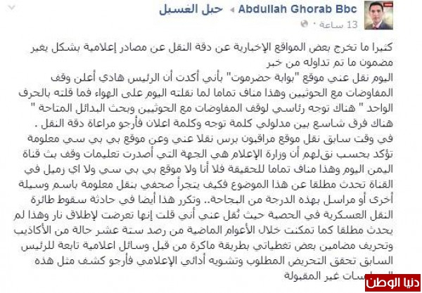 بالصور والوثائق الدامغة مراسل ال بي بي سي باليمن ينكر ما يقوله وتنشره القناة