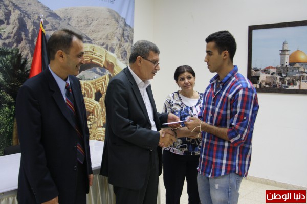 سلم ماجد الفتياني محافظ اريحا والأغوار مكرمة السيد الرئيس محمود عباس ابو مازن لطلبة الثانوية العامة المتفوقين من ابناء المحافظة في مقر المحافظة ظهر اليوم بحضور مدير التربية والتعليم محمد الحواش ومدير عام الشؤون الادارية والمالية في المحافظة يسرى السويطي